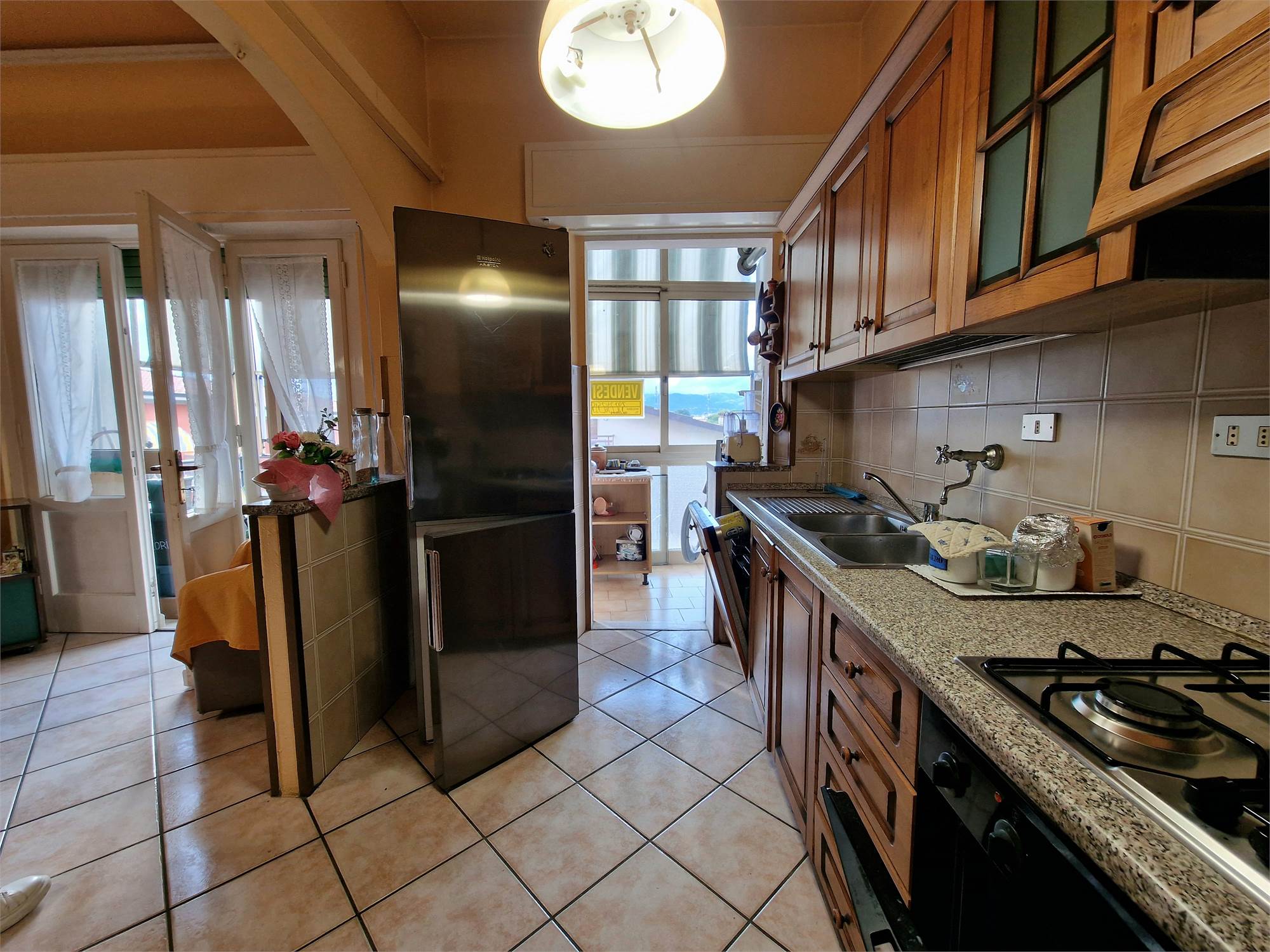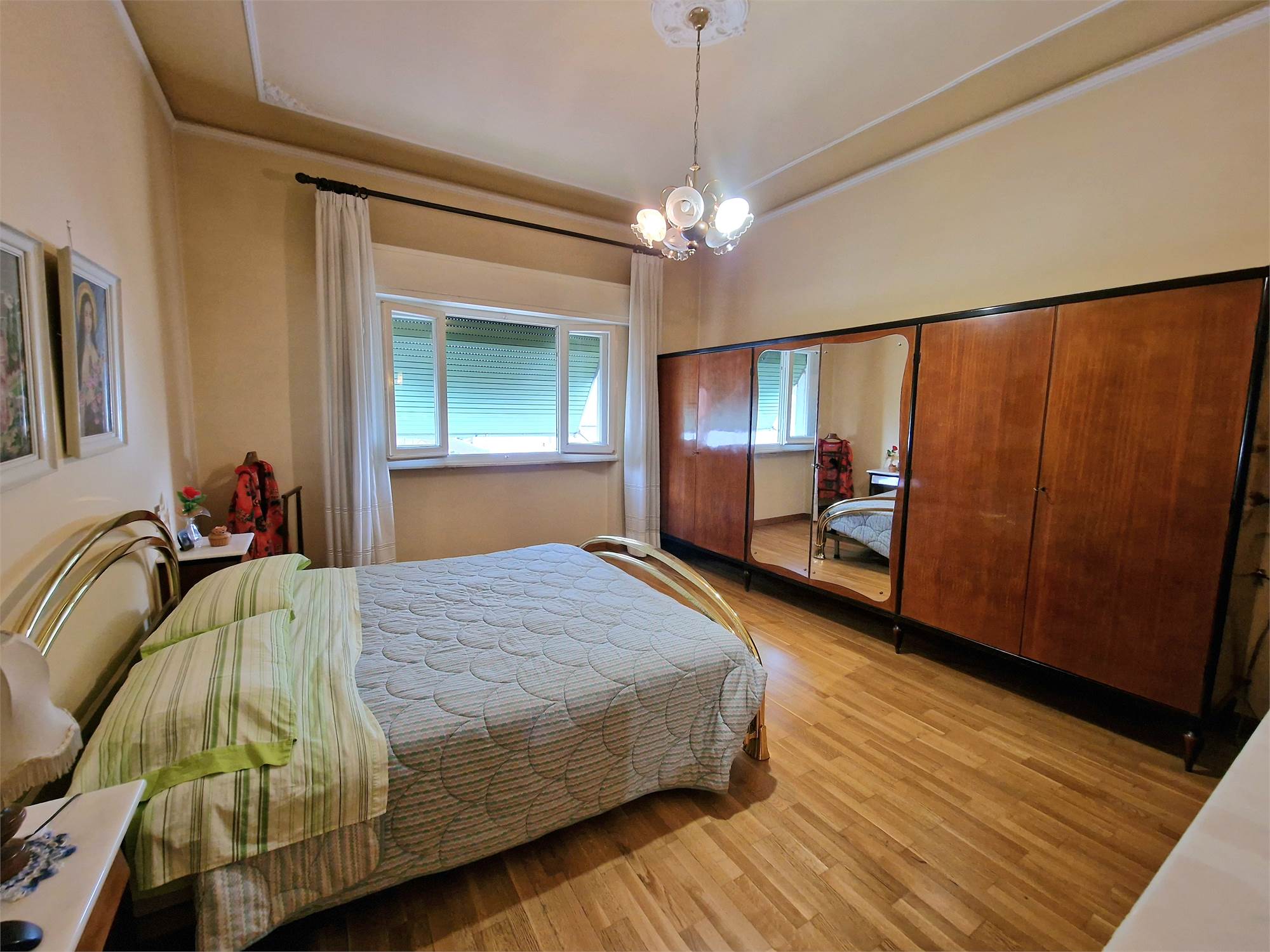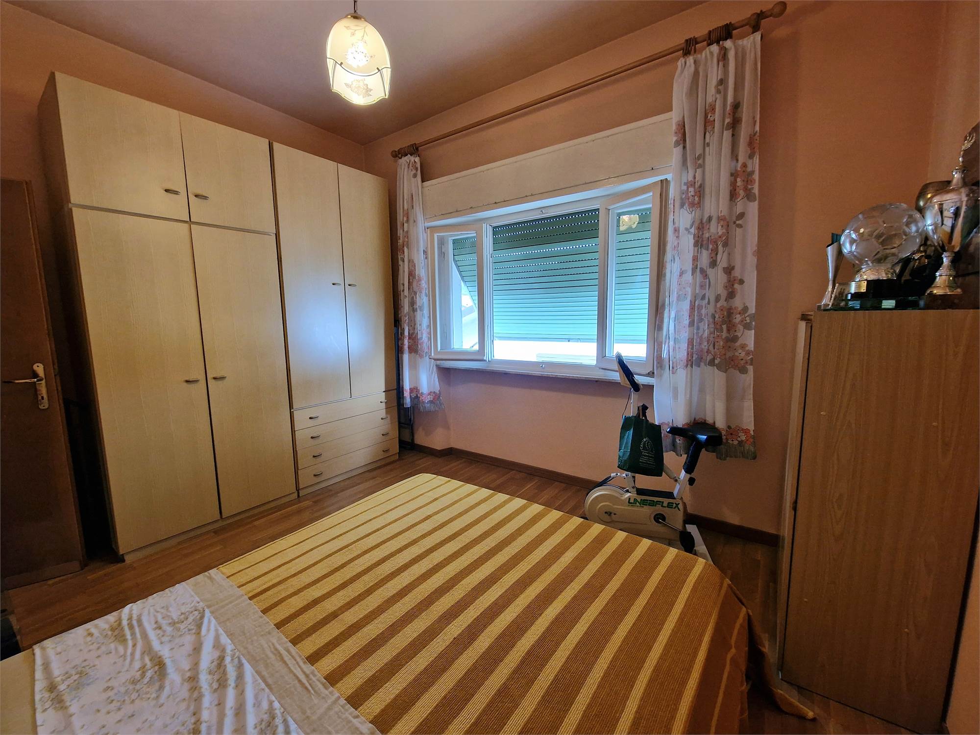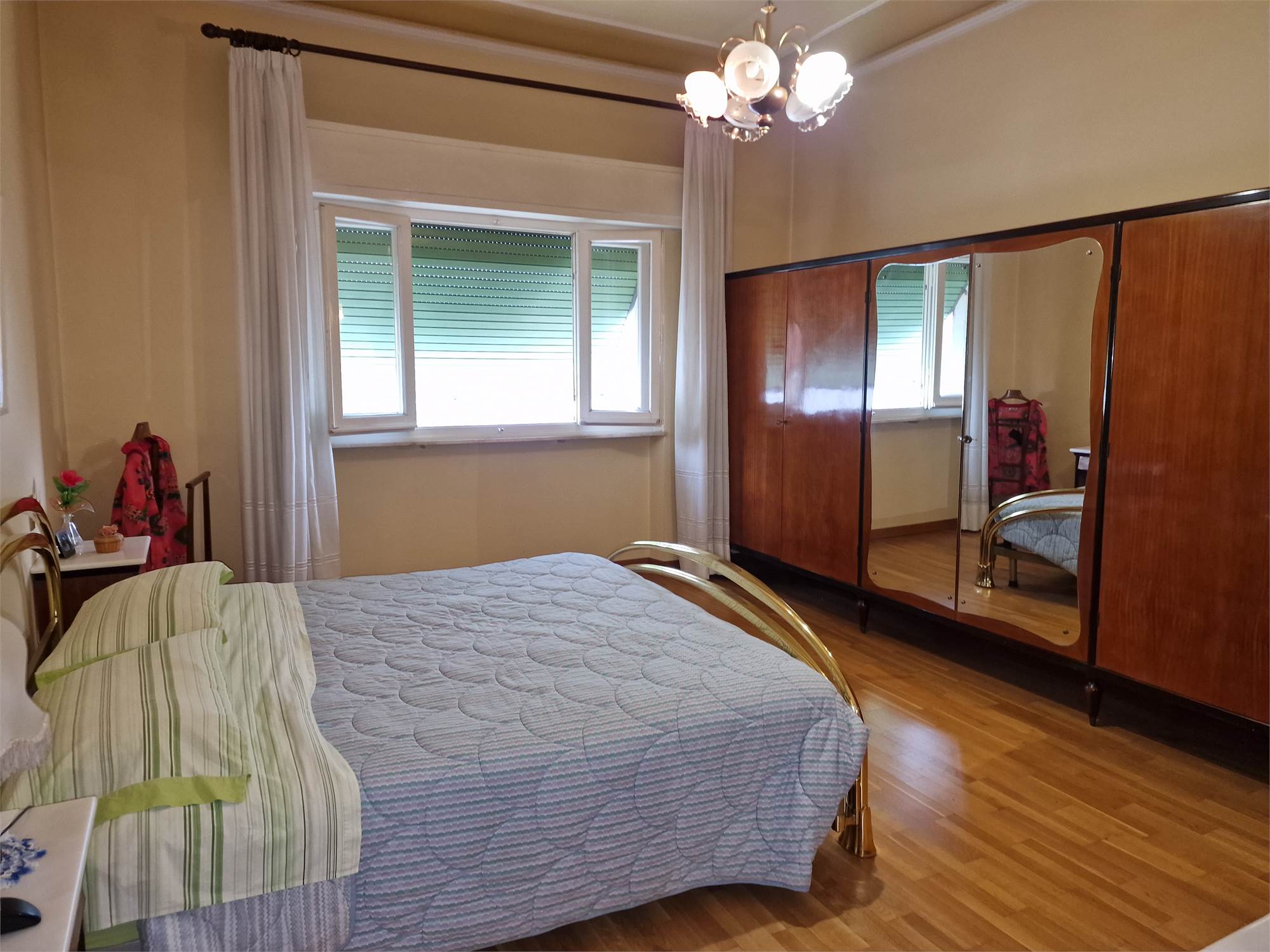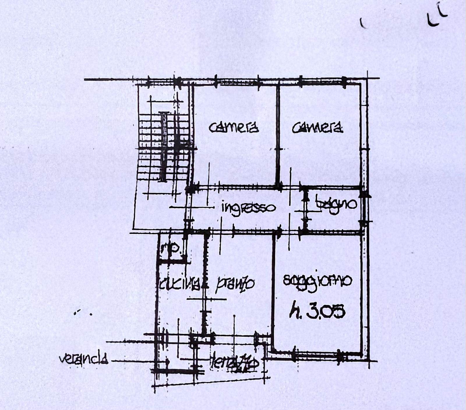 Si compone di: ingresso, soggiorno, sala da pranzo, angolo cottura, balcone con una parte verandata, due ampie camere matrimoniali con parquet, bagno, ripostiglio.